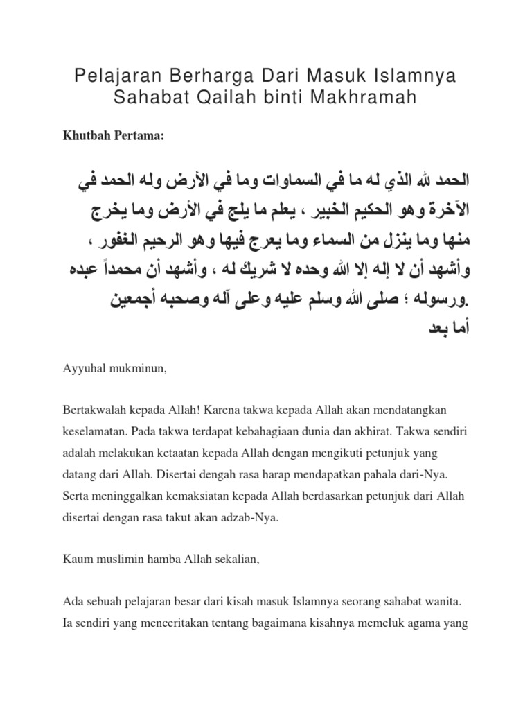 Pelajaran Berharga Dari Masuk Islamnya Sahabat Qailah Binti Makhramah