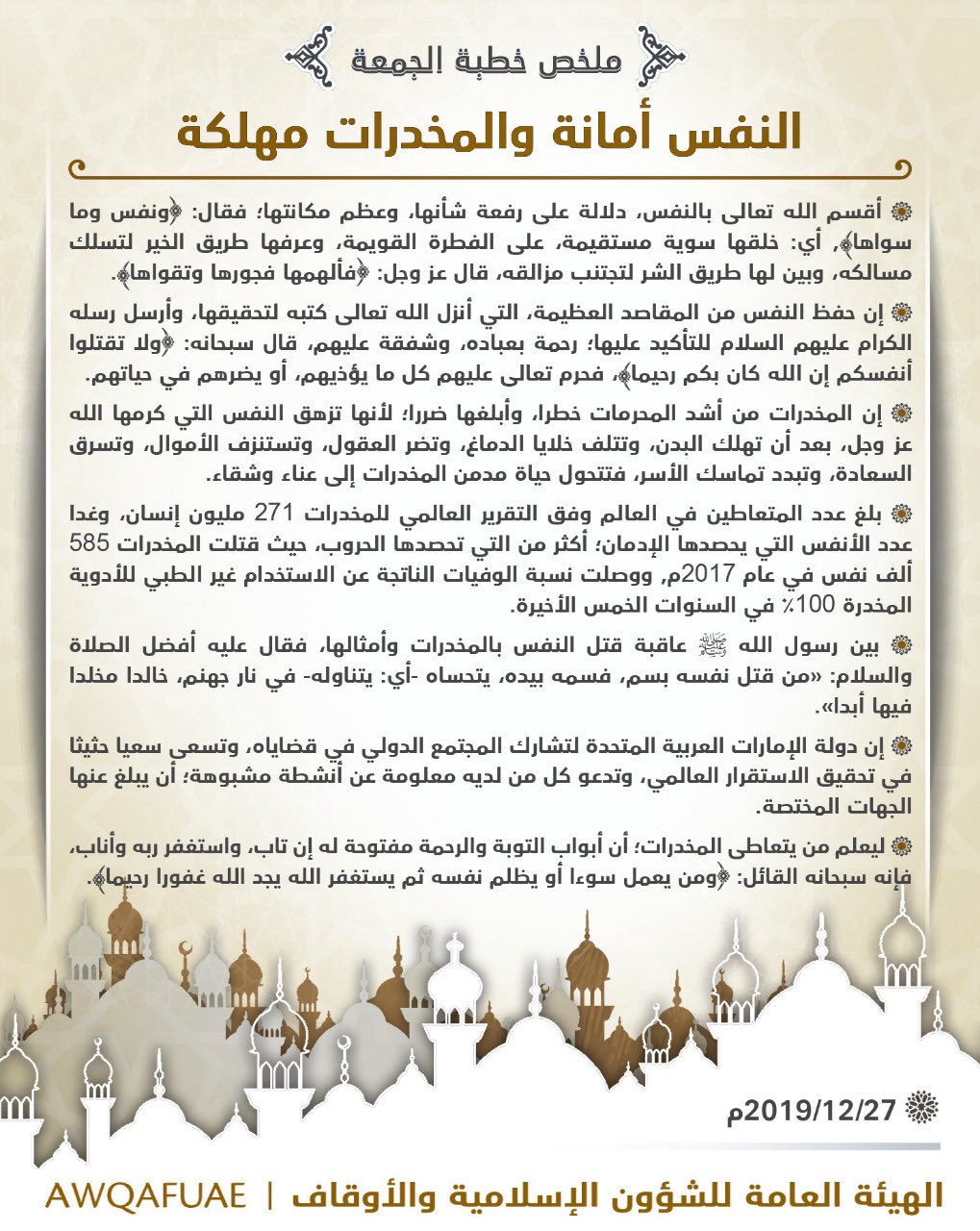 أوقاف امارات On Twitter ملخص خطبة الجمعة النفس أمانة والمخدرات مهلكة أوقاف إمارات Awqafuae خطبة الجمعة البيوت سكن وطمأنينة