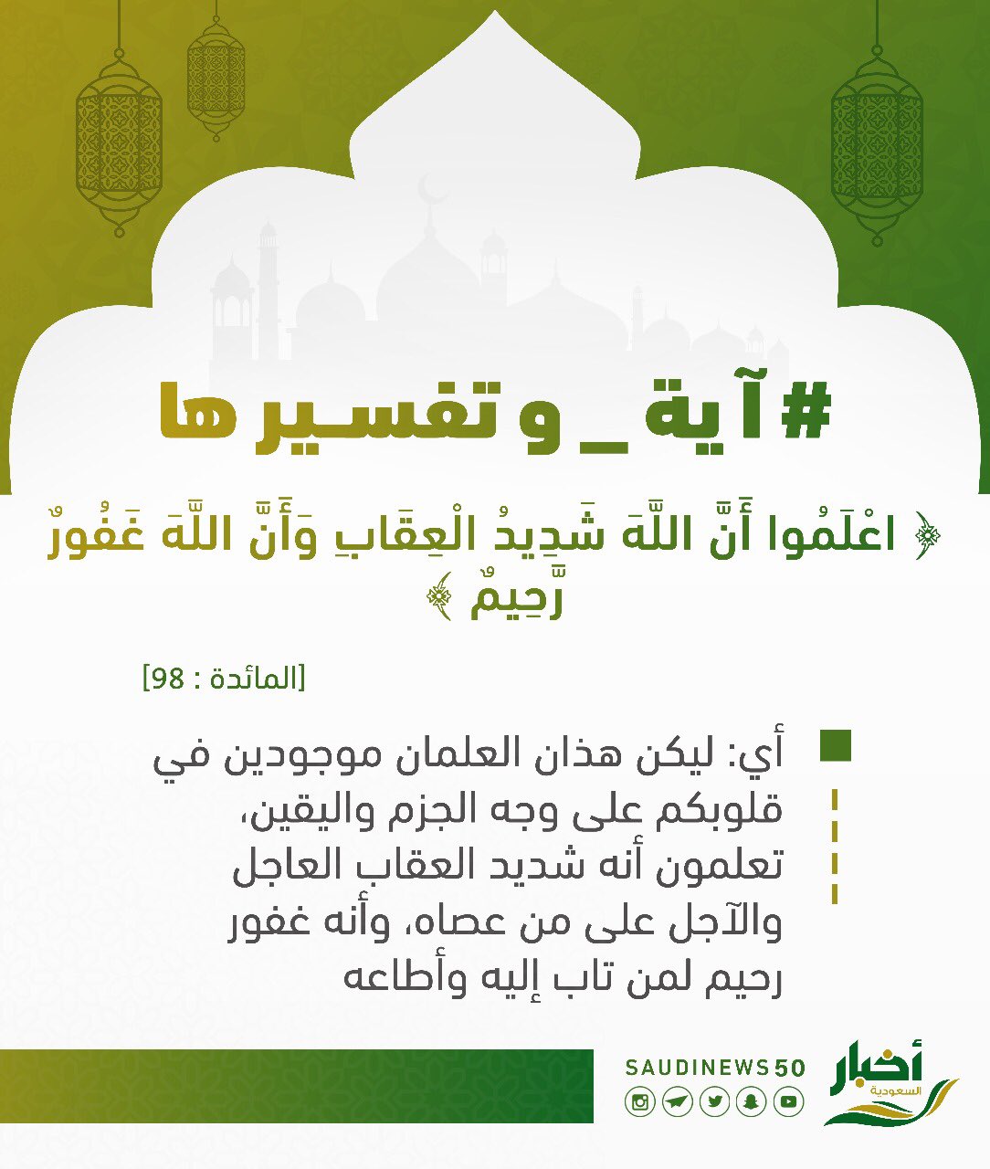 أخبار السعودية Sur Twitter آية وتفسيرها اعلموا أن الله شديد العقاب وأن الله غفور رحيم رمضان القرآن شهر رمضان